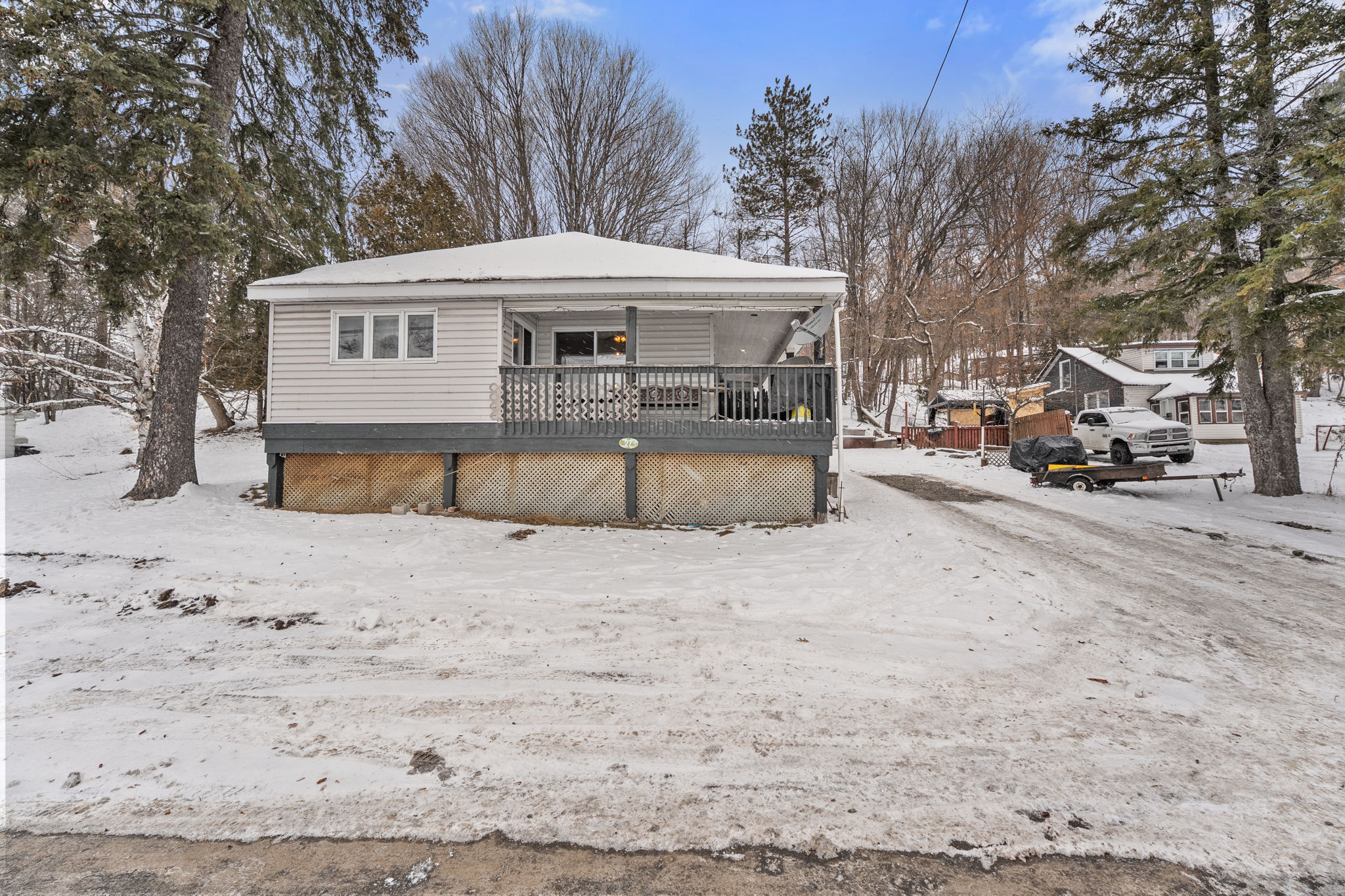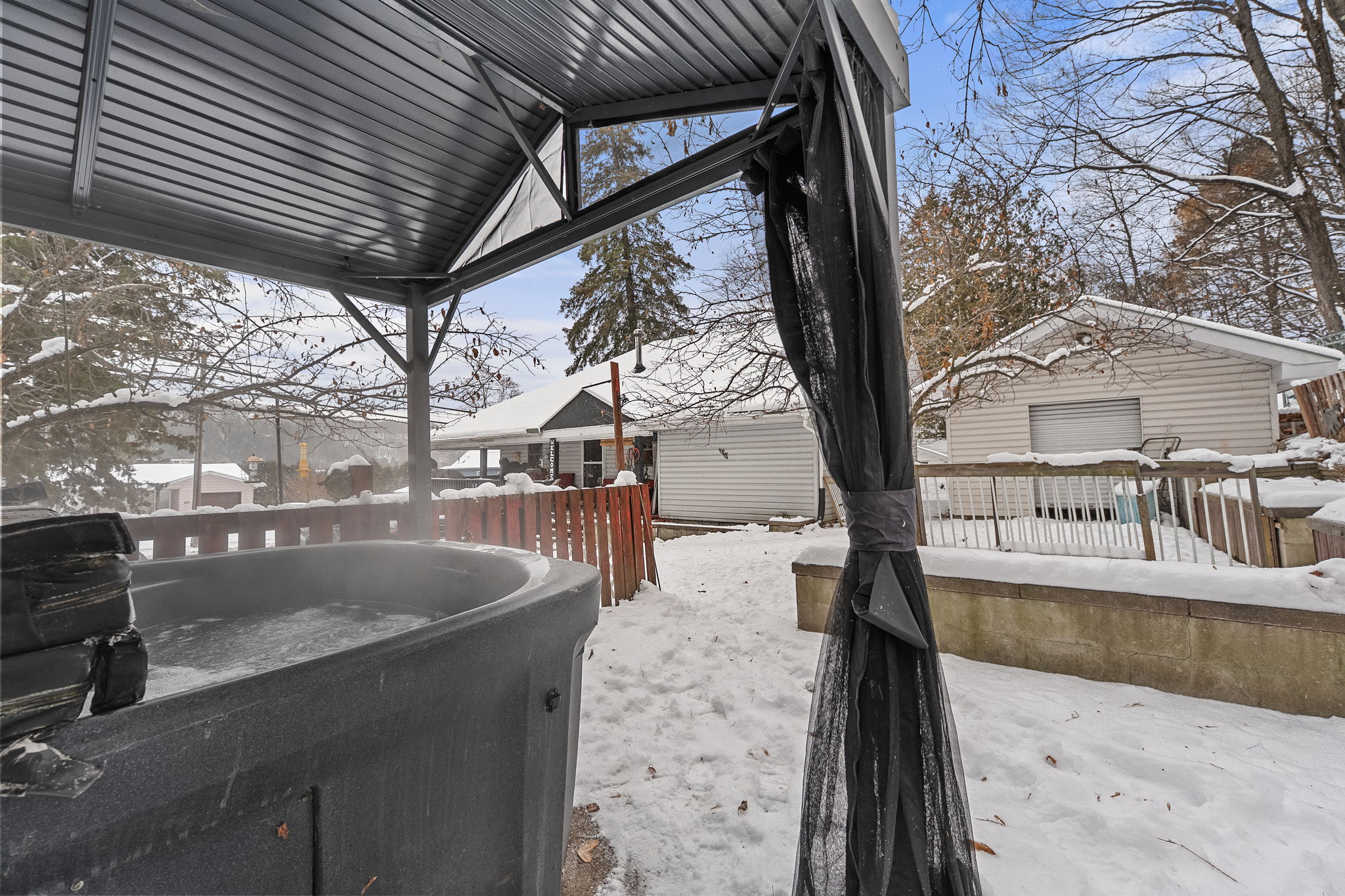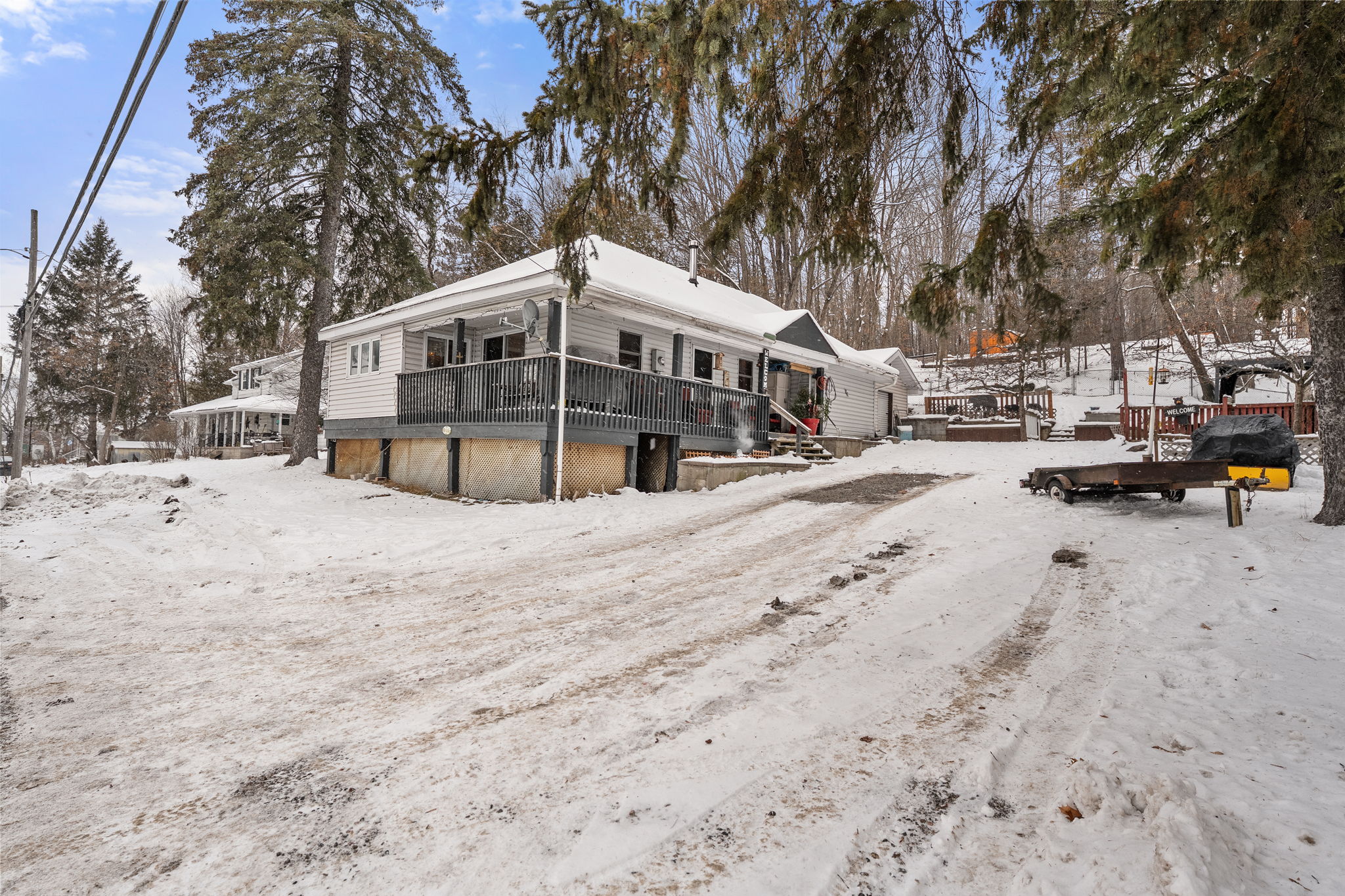A Sweet In-Town Package in the Heart of Haliburton! This charming 3-bedroom in-town home offers exceptional walkability, easy living, and all the conveniences you're looking for. The welcoming floor plan features a great open-concept kitchen, dining, and living area that flows seamlessly to the covered wraparound porch. Start your mornings with a coffee in hand, enjoying the beautiful, bright sunrises, or spend quiet evenings unwinding in the hot tub-the perfect spot to relax with your favourite beverage. The well-designed kitchen is ideal for cookie baking or preparing everyday meals, making it a true heart-of-the-home space. Additional features include main floor laundry, a garage, drilled well, town sewers, propane furnace, and air conditioning. This home is a wonderful starter property, retirement option, or smart investment. Perfectly located, you're just a 3-minute walk to Rotary Park and the public beach, a local favourite for swimming, picnics, and lakeside relaxation. Head Lake, the first in Haliburton's beautiful five-lake chain, is close at hand, with a public boat launch under 5 minutes away. Your daily walk to town is level and comfortable, with sidewalks and streetlights leading you to groceries, banks, schools, and popular Up River Trading for lattes and treats. The area offers an incredible four-season lifestyle, surrounded by restaurants, gift shops, and attractions like the iconic Sculpture Forest. The Haliburton School of Art + Design - Fleming College are all within 5 minutes. Whether you're seeking a charming in-town home, a rental or investment property, or you're ready to step into homeownership, this property is truly a sweet, complete package.